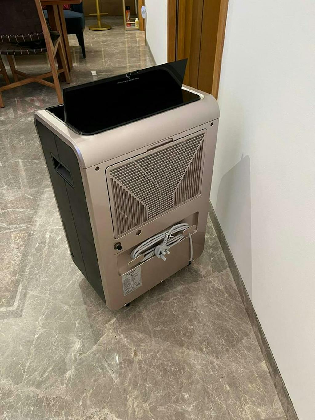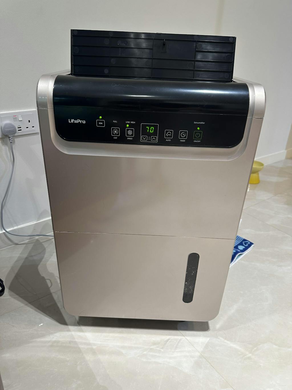 Bought DH70 dehumidifier , very fast delivery. Very Impressed with the capabilities of this machine. Just one thing need take note the black rubber stopper behind the machine need to be put on at all times during usage unless you are using the hose provided. Mine came off while unboxing and I turned it on. The hall was full of water. Overall this mean machine is good enough for the whole house👍🏼👍🏼👍🏼👍🏼